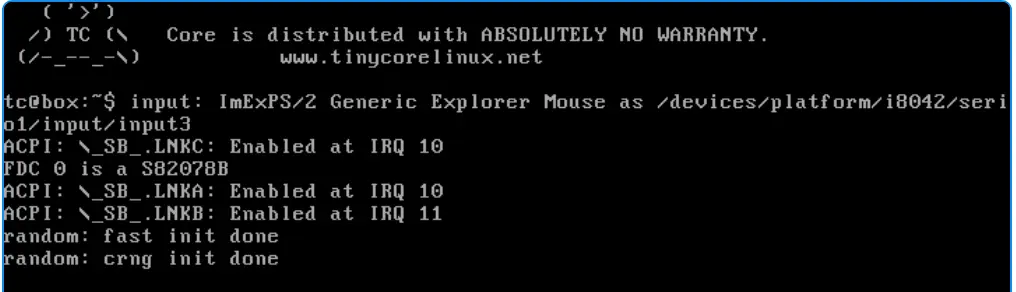 使用上面获得的 isolinux 启动流程启动 Tiny Core Linux: